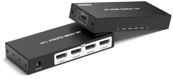 RAYMAX 4 Port HDMI Splitter allows a single HDMI input to be shared across four displays simultaneously, ensuring clear and stable HD audio-video output. This 4k HDMI splitter Support 4k@60Hz anc Designed for smooth signal distribution without degradation, it is perfect for multi-screen environments such as classrooms, retail displays, CCTV monitoring, offices and home entertainment setups. With easy plug-and-play operation, this splitter provides reliable performance for professional and personal use.