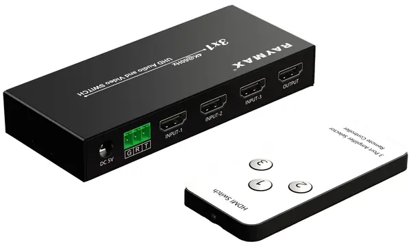 RAYMAX HDMI SWITCH 3 PORT-RSW-03. Hdmi swith support 4k resoltion. With remote. Can switch 3 input over 1 output. Can switch manually or by remote. 1 year limited warranty.
