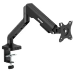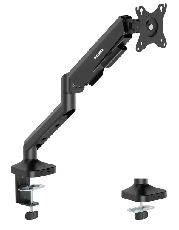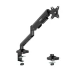 RAYMAX RGT-401 Single monitor Stand fits 17-40″ monitor upto 12kg weight capacity with 75*75 or 100*100mm mounting holes. This design offers improved work efficiency, increasing desk space and comfort. The advanced gas spring mechanism provides fluid movements including +45?~-45? tilting, +90?~-90? swiveling, and +180?~-180? rotation .Two Mounting Options: both desk clamp and grommet are included