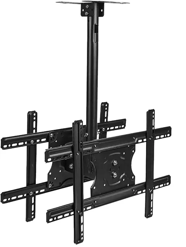 RAYMAX Maximize viewing flexibility with the T-750 full-motion TV ceiling mount, providing exceptional versatility and universal compatibility. Easy assembly, heavy-duty construction, and a compact package ensure an excellent user experience. Its tiltable ceiling plate is designed to adapt to flat and pitched roofs. Ideal for supermarkets, airports, restaurants, conferences, and more.