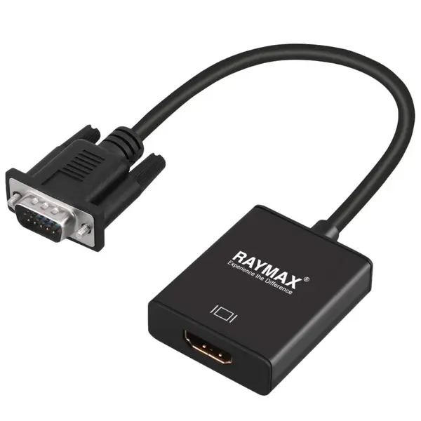 RAYMAX VGA male to HDMI female converter support VGA input resolution from 800*600 to 1920*1080 for PC. Support HDMI Output resolution up 720P/1080i/1080P for HDTV/Projector/Monitor. Work with PC, laptop, TV,TV-Box and other VGA output devices. HDMI port can be connected to projectors, HDTV, monitors/Displayer and other device with HDMI port.